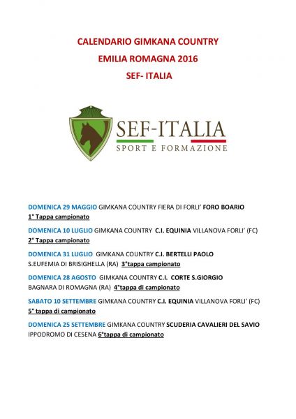 Calendario attività 2016 – Ranch El Picadero