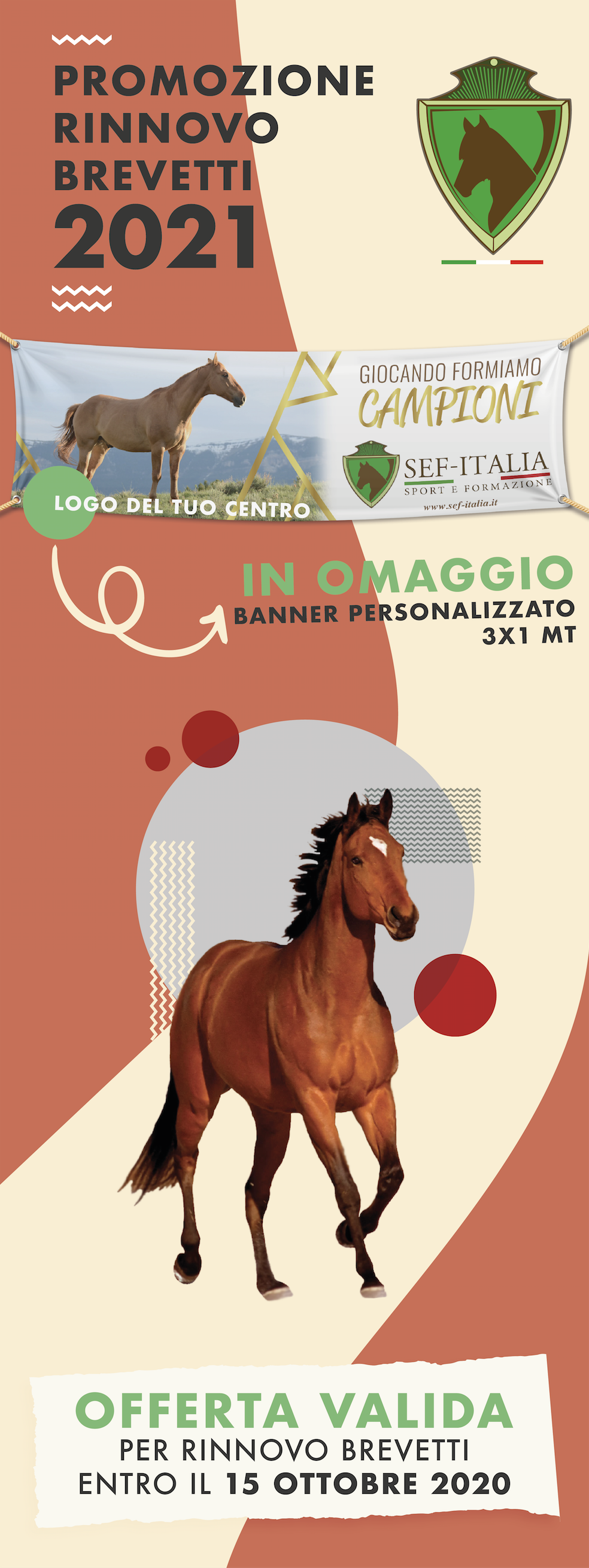 Se rinnovate ora il/i vostro/i brevetto/i per il 2021 riceverete in omaggio uno striscione (banner in pvc di 3 x 1mt) con il vostro logo da poter esporre nella vostra struttura e/o portare agli eventi.